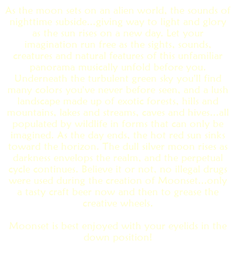 As the moon sets on an alien world, the sounds of nighttime subside...giving way to