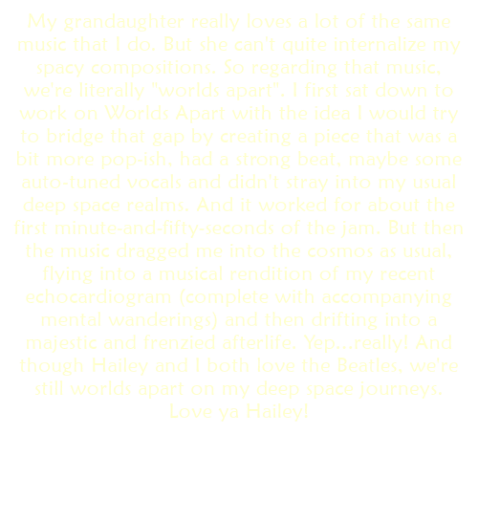 internalize my spacy compositions. So regarding that music, we're literally "worlds